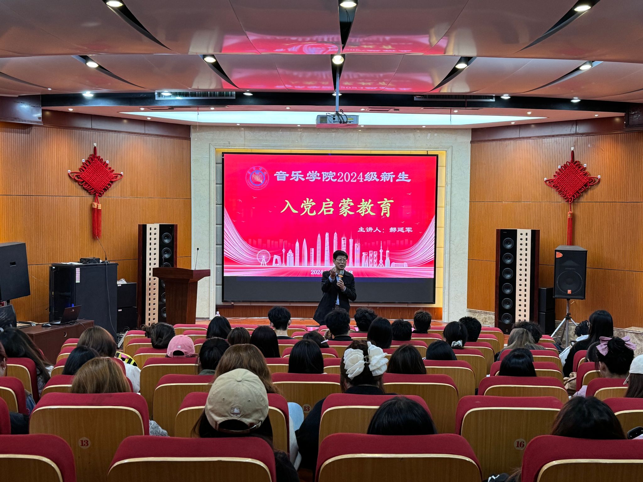 为进一步坚定学生理想信念,加深学生对党的认识,引导学生树立正确的入党动机,10月24日下午,音乐学院在图书馆报告厅举行2024级新生入党启蒙教育讲座。讲座由党总支书记贺星主持,我校文学院院长郝延军主讲。 历史是...