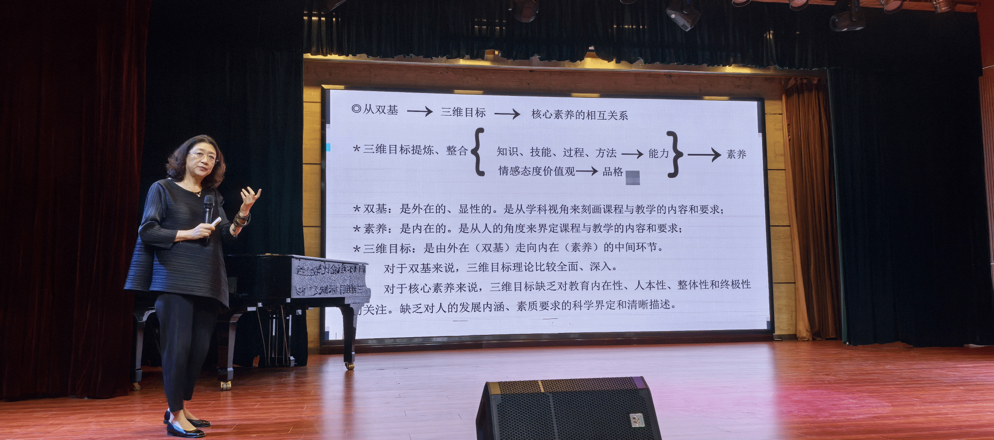 为推动学院专业内涵建设,9月4日下午,我院特邀东北师范大学二级教授、博士生导师、教育部艺术教育委员会常委尹爱青教授,作题为《新课标解读与音乐课堂教学分析》的专题讲座。全院200余名师生参与了活动。 讲座以"核...