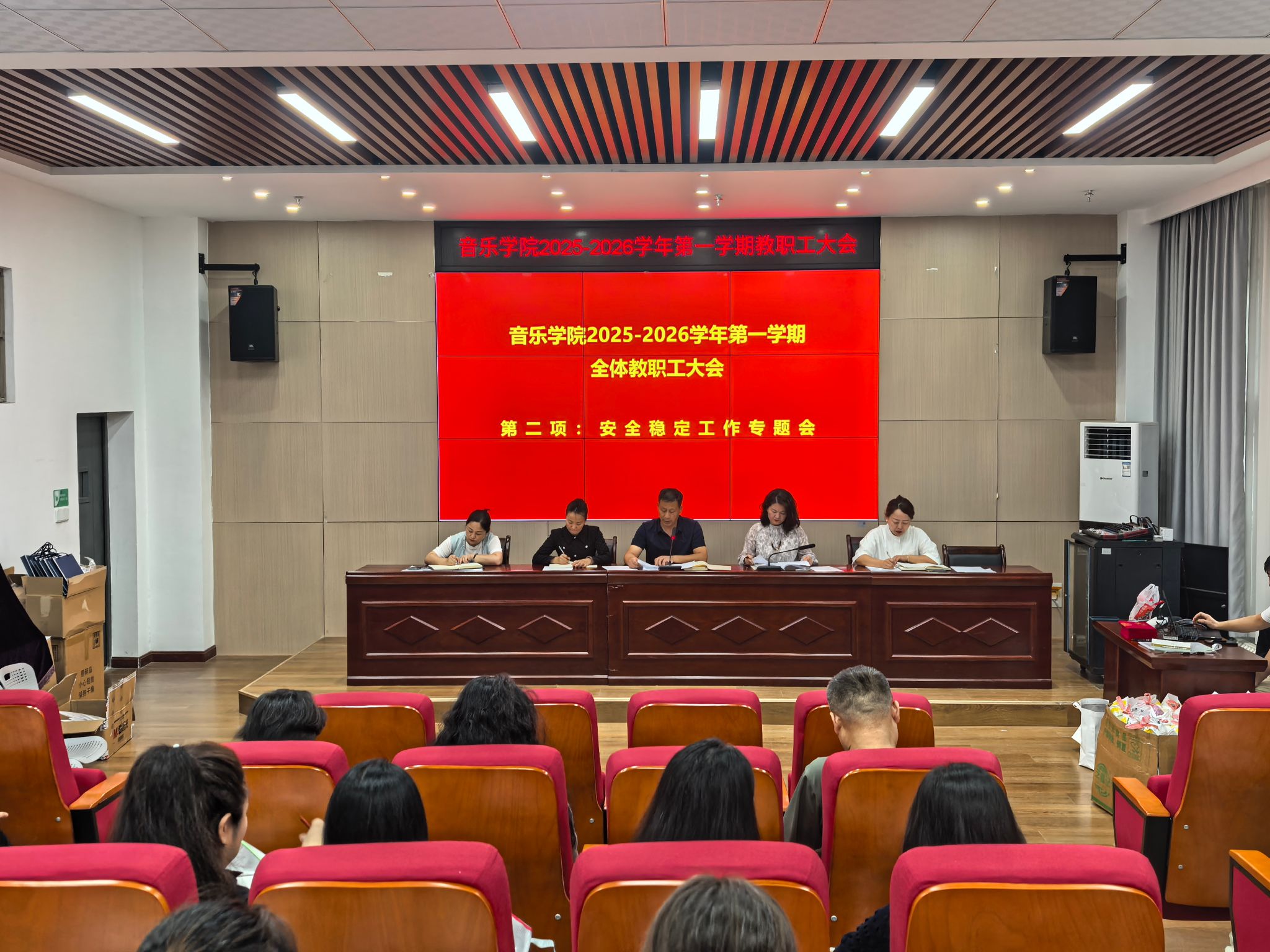 为了筑牢安全防线,为学院教育事业高质量发展提供坚实保障,9月10日,音乐学院召开安全稳定工作专题会,学院全体教职工参会,会议由党总支书记薛斌主持。 会上,党总支委员高婧传达了全省教育系统安全稳定工作会议精...