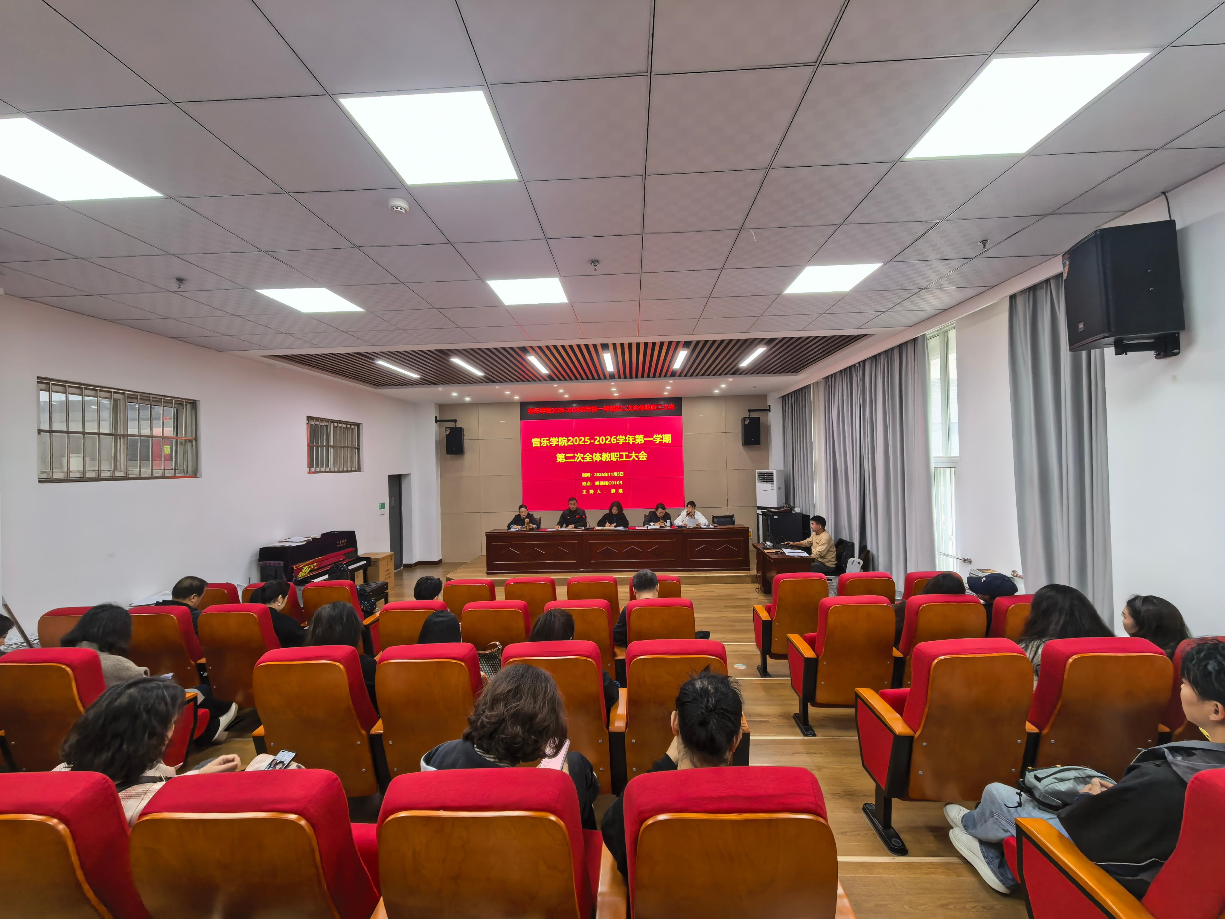 11月5日,音乐学院在明德楼C区103学术报告厅召开2025-2026学年第一学期第二次全体教职工大会。学院领导班子、全体教职工参加了大会,会议由党总支书记薛斌主持。 在理论学习会上,学院副院长领学《党的二十届四中全会...