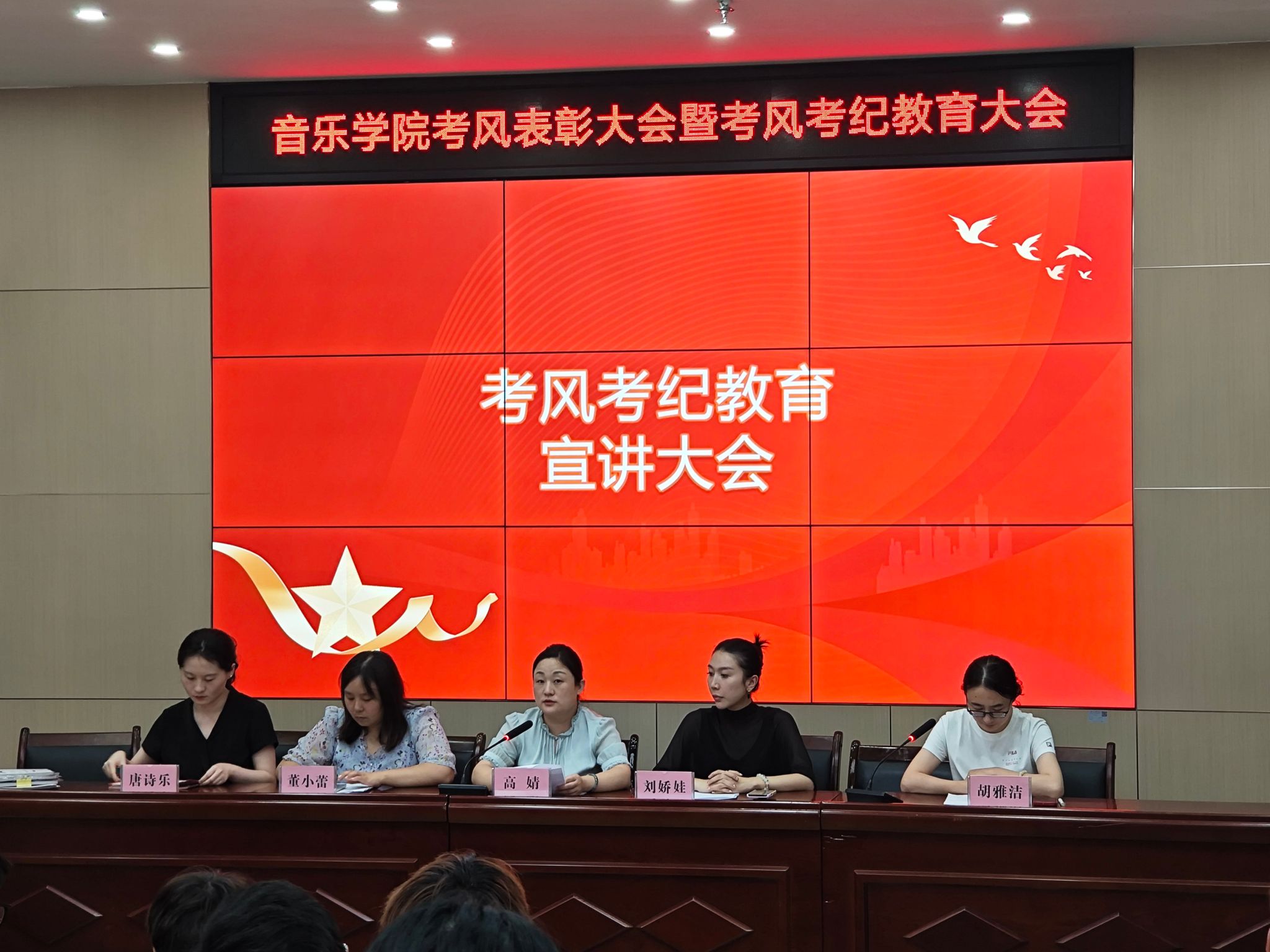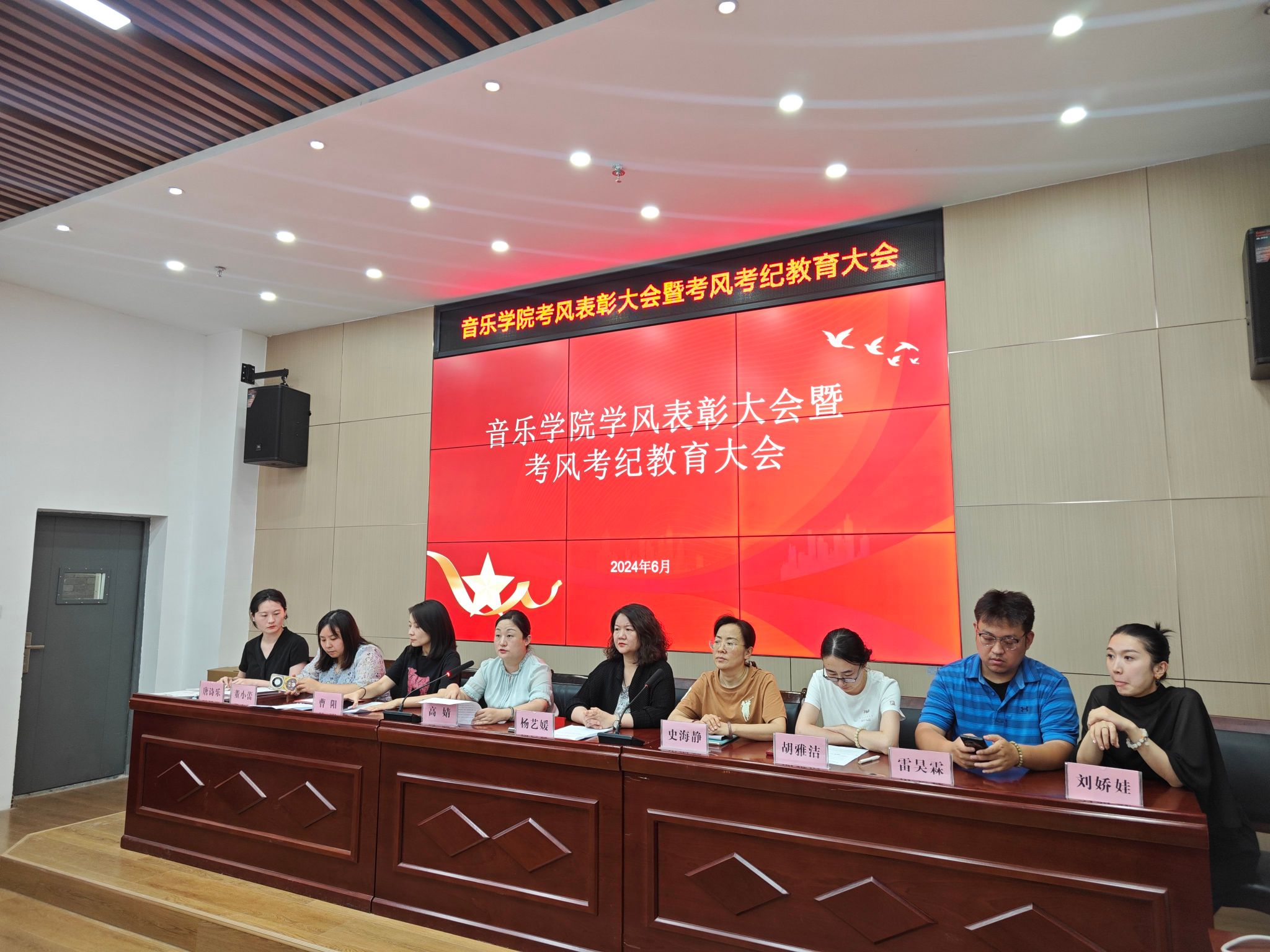 为持续加强学风建设工作,营造浓厚的学习氛围和良好的育人环境,总结经验,宣传典型、表彰先进,推动学风建设内涵式发展,6 月 19 日下午,音乐学院召开2023—2024 学年学风建设表彰大会。院长杨艺媛、副院长史海静、院党总支委员高婧、各系部主任、辅导员以及学生代表等百余人参与了此次大会。此次大会由高婧主持。