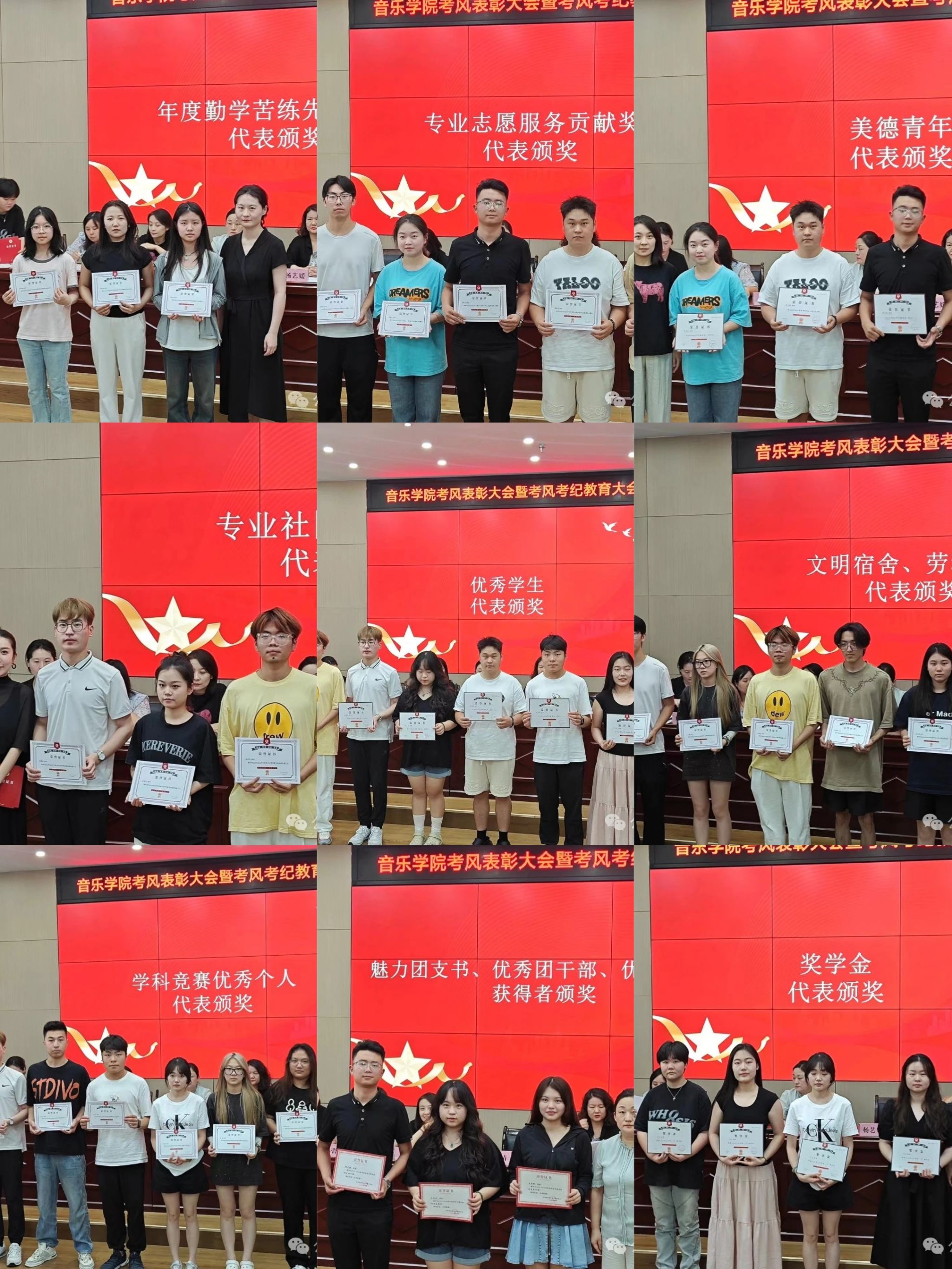 会议中,院长杨艺媛宣读了《西安文理学院音乐学院关于表彰2023 - 2024 学年学风建设各类学生获奖的决定》。大会共表彰校级优秀班集体,校级奖学金、优秀学生干部、优秀学生等15项校级奖励。学院领导及教师分别为获奖集体和个人颁发荣誉证书。
