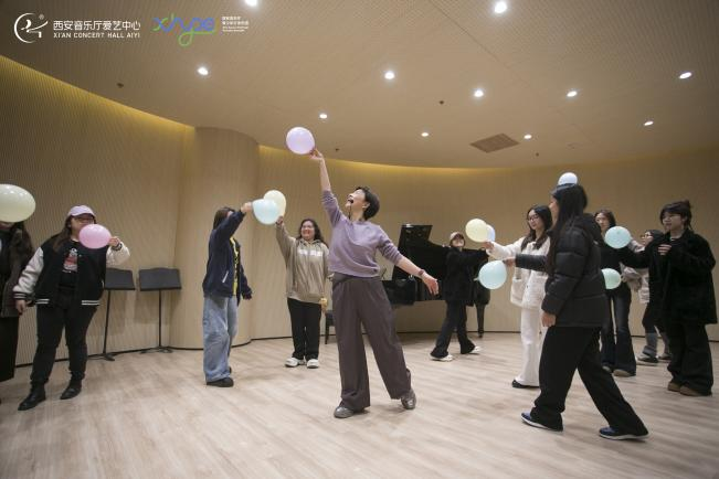 随后的研学体验环节将活动推向了高潮。同学们被分为四个小组,依次进入不同教室,参与了一系列别开生面的特色音乐体验课程。在西安音乐厅青少年打击乐团艺术总监、教学总监、西安交响乐团定音鼓首席杨帆,以及彭小冬主任的引领下,同学们沉浸于打击乐与奥尔夫音乐的奇妙世界。梁帆、张玮琛、屈琳妍三位青少年打击乐团讲师为各小组进行了细致的分组教学,通过互动与实践,让同学们亲身感受到了节奏的律动与集体音乐创作的乐趣,现场气氛热烈,欢声笑语不断。