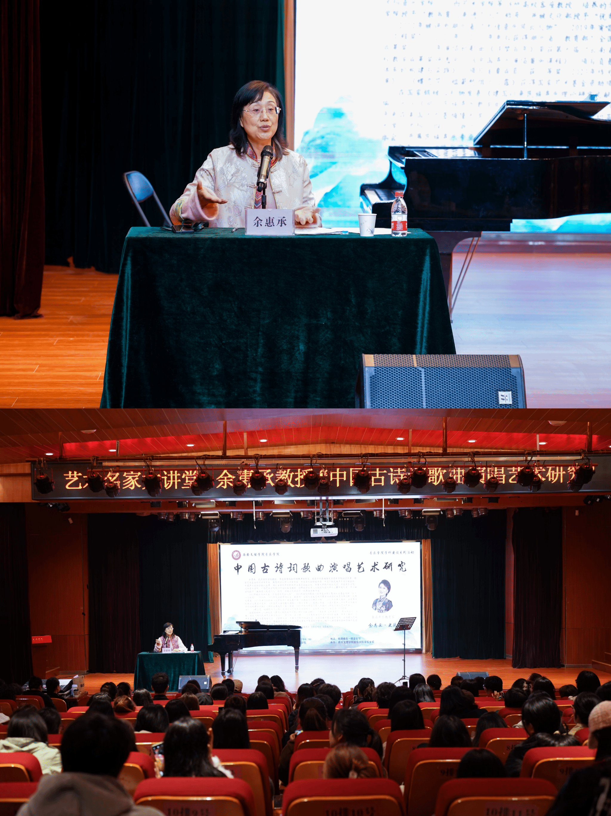 11月1日下午,音乐学院成功举办学科建设系列活动——余惠承教授《中国古诗词歌曲演唱艺术研究》讲座暨大师课。余惠承教授是中国著名声乐教育家、武汉音乐学院声乐系主任、国务院特殊津贴专家、美国卡内基梅隆大学音乐学院访学者、中国音乐金钟奖评委;演唱作品《百年复兴梦》获湖北省委宣传部“五个一工程奖”,在业界享有较高知名度。讲座由史海静副院长主持,我院声乐教师及音乐专业学生积极参与了此次学术交流活动及大师授课,全场座无虚席,吸引了众多业界师生和声乐爱好者。