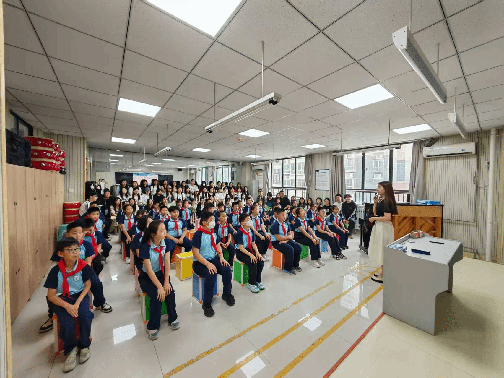 5月14日下午,学生在雁塔四小观摩音乐课堂教学,闫冰老师用多媒体动画将乐理知识可视化,如在《小纸船的梦》教学中设计"音高与纸船联动";高嘉瑜老师借《哈利·波特》等影视配乐引导学生感知音乐表现力。