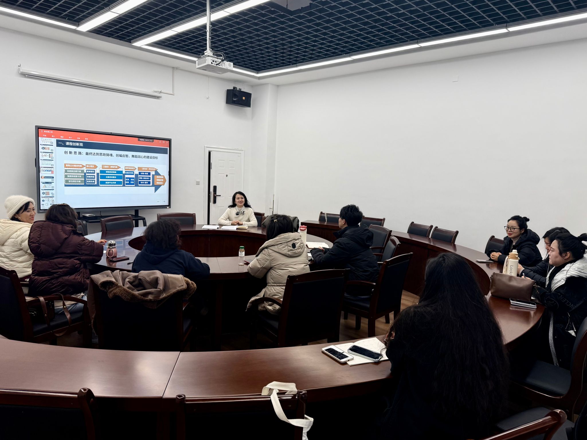 会上,孔珊珊以《幼儿舞蹈》课程为实践范本,围绕课程设计理念、教学方法创新、思政元素融合三大核心维度,系统拆解课程思政教创赛备赛与实践的关键路径。她结合具体教学案例,生动阐释如何将“立德树人”根本任务融入课堂教学各环节,为青年教师提供了兼具理论性与实操性的教学策略。在互动交流环节,音乐学院教师聚焦艺术课程思政建设的重点难点问题踊跃提问,与主讲嘉宾展开深度研讨,现场氛围热烈。