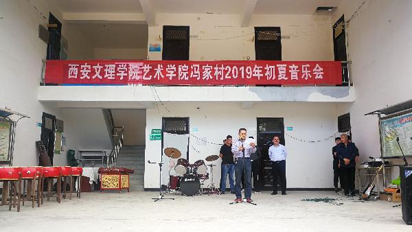 2019年5月10日下午,为活跃群众精神文化生活、弘扬社会主义核心价值观、助力乡村振兴,艺术学院在蓝田县冯家村公共服务中心,为广大群众奉献一场精彩的音乐会。艺术学院院长郭涛、副书记王一及师生演职人员30余人,我校驻冯家村第一书记童润涛、驻村工作队长薛斌及联络员张国良,冯家村两委会成员及村民群众演员300余人参加。
